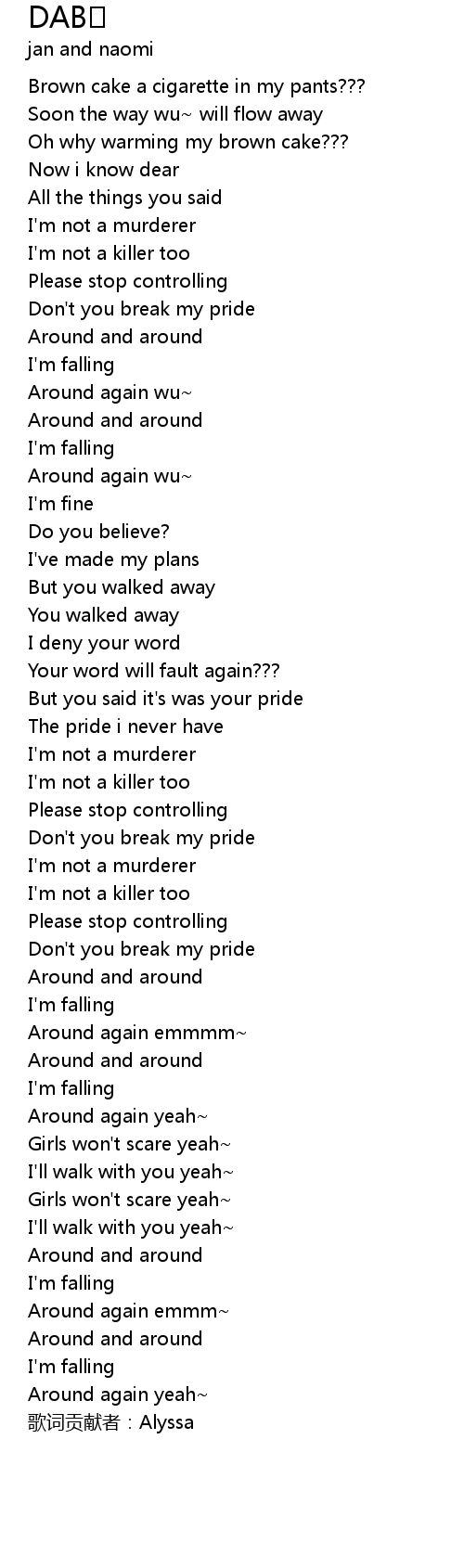 | [00:49.57] | Oh why warming my brown cake??? |