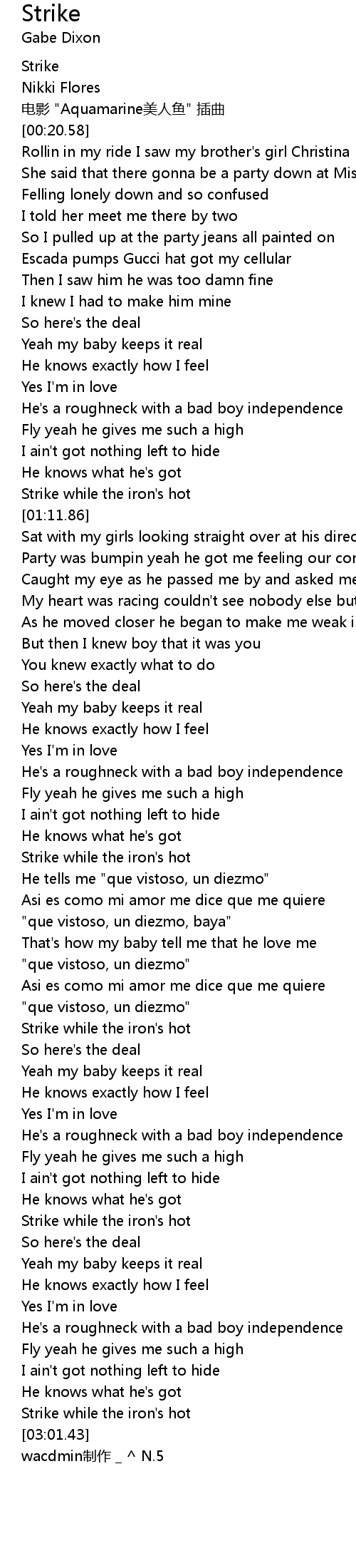 | [01:21.14] | Caught my eye as he passed me by and asked me how I'm doing tonight |