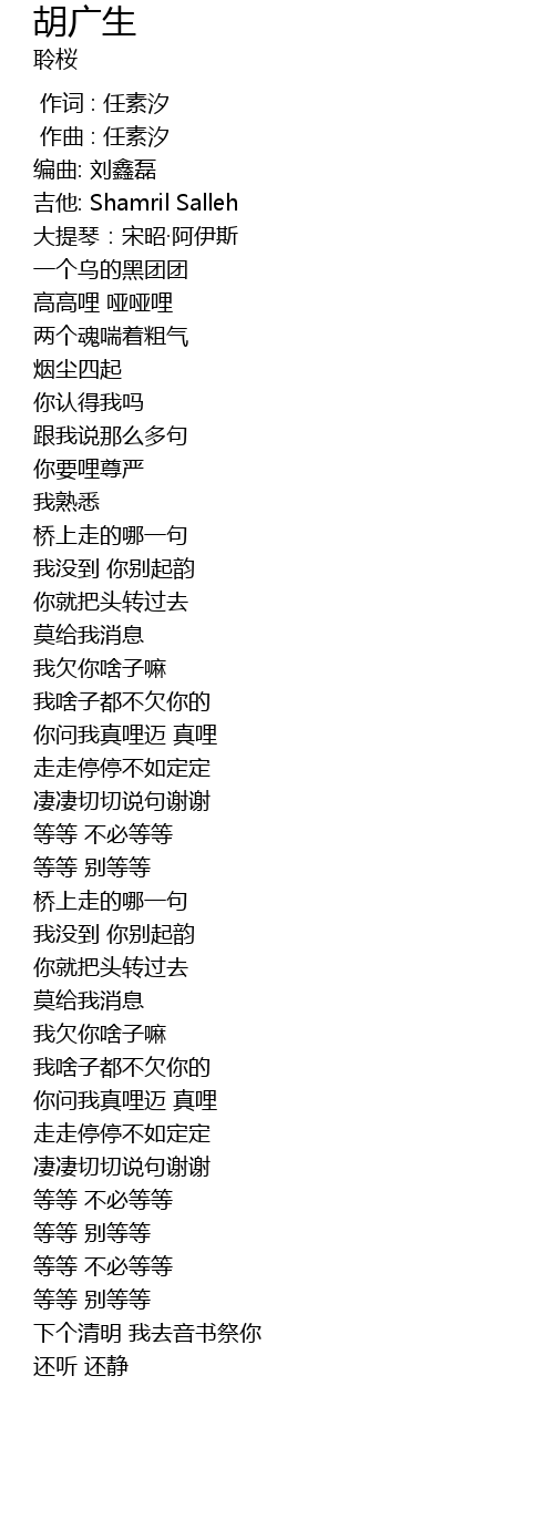 | [00:00.000] | 作词 : 任素汐 |