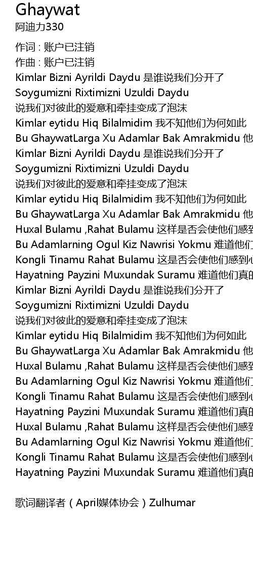 歌词翻译者(April媒体协会)Zulhumar