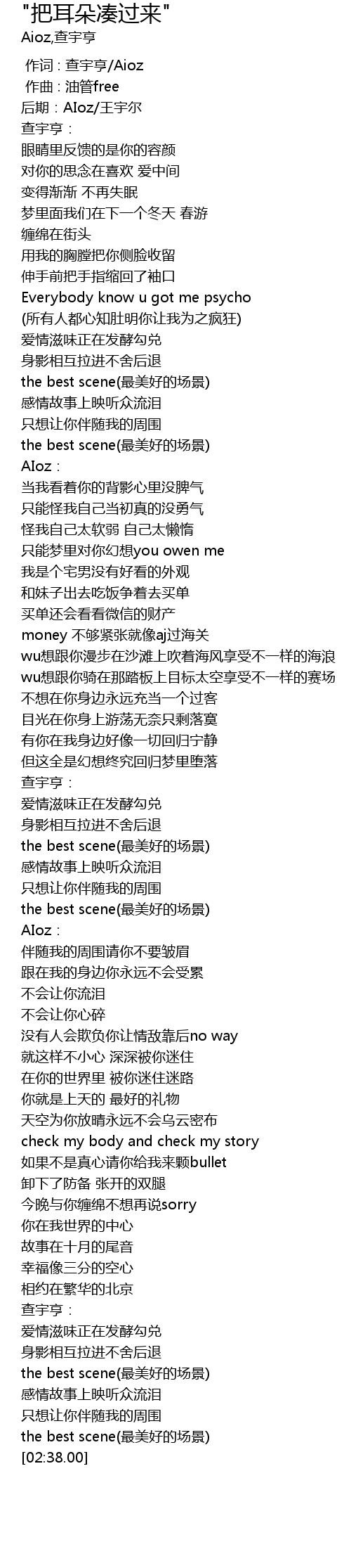 | [00:00.000] | 作词 : 查宇亨/Aioz |