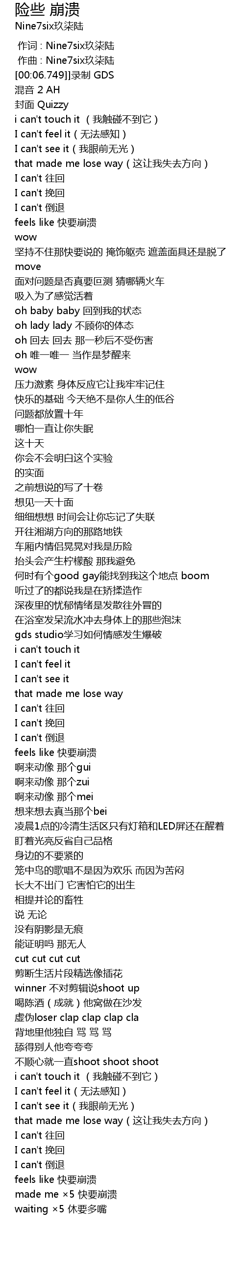 | Song | 险些 崩溃 |