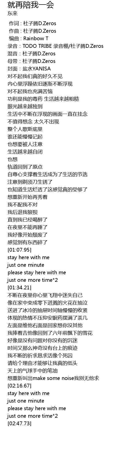 | [00:02.185] | 录音:TODO TRIBE 录音棚/杜子腾D.Zeros |