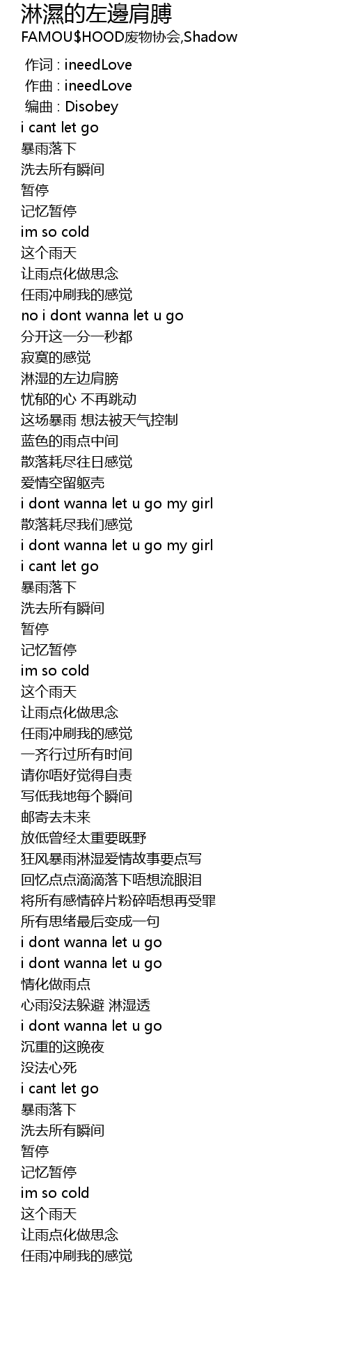 | [01:40.832] | 任雨冲刷我的感觉 |