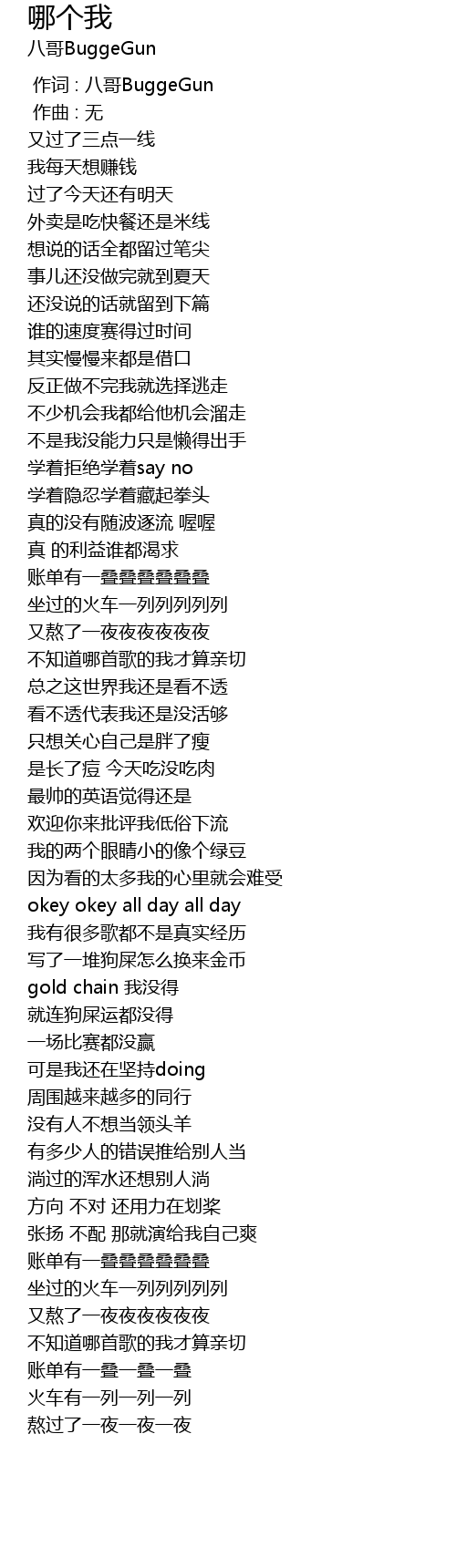 | [00:00.000] | 作词 : 八哥BuggeGun |