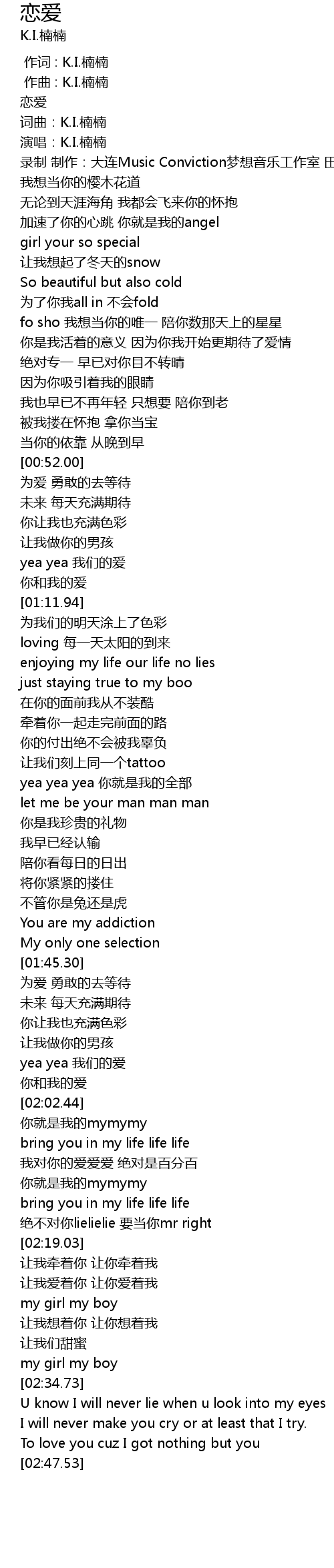 | [00:00.000] | 作词 : K.I.楠楠 |