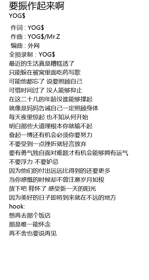 | [00:01.000] | zuo qu : YOG Mr. Z |