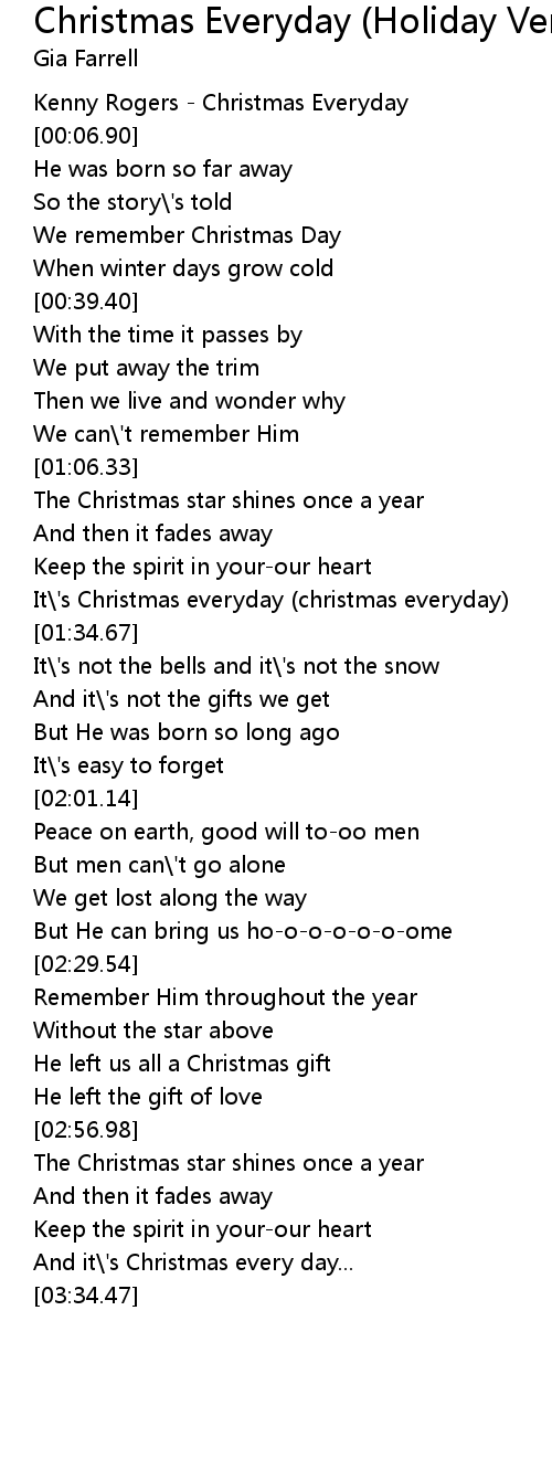 [00:01.29] Kenny Rogers - Christmas Everyday