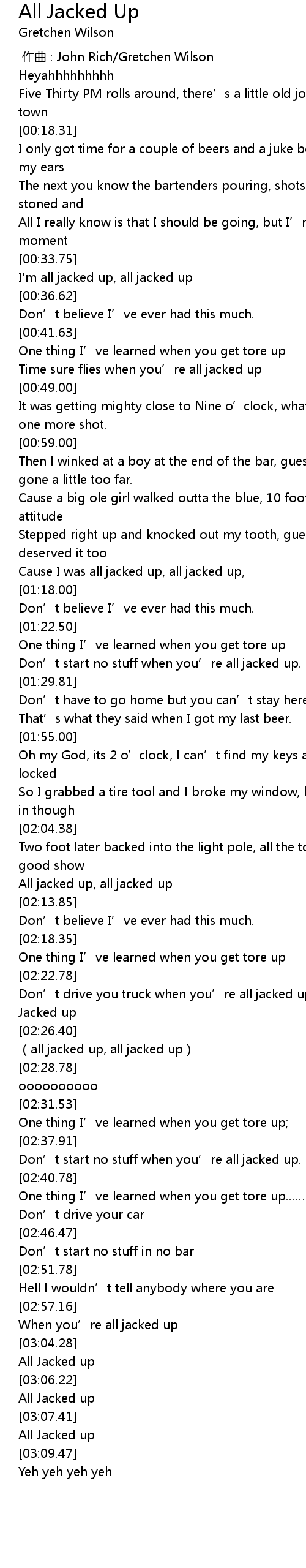 | [03:06.78] | All Jacked up |
