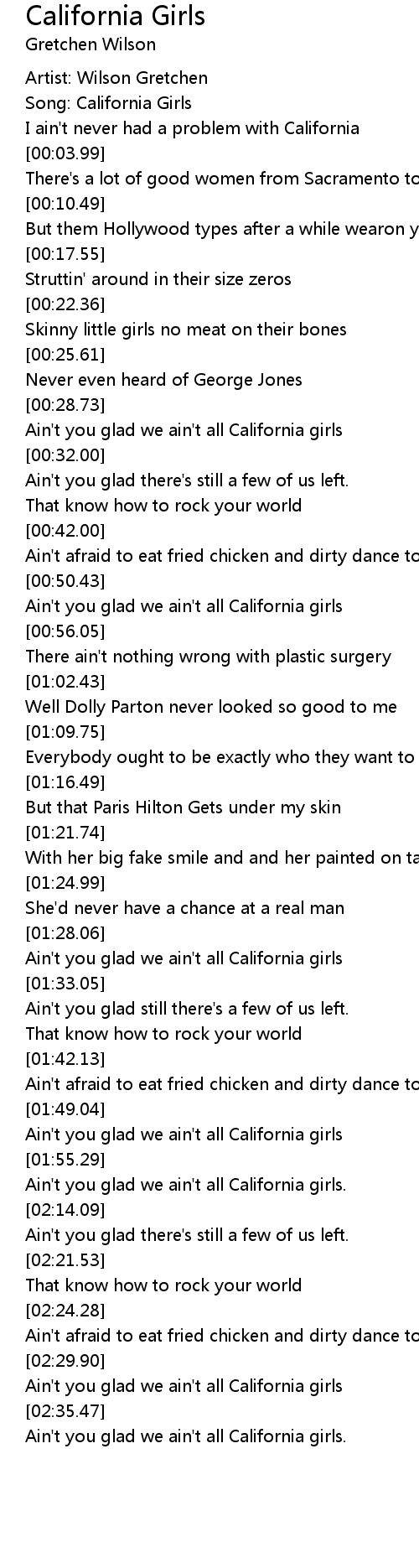 Ain't you glad we ain't all California girls. |