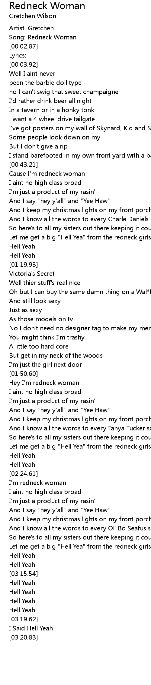 Let me get a big "Hell Yea" from the redneck girls like me |