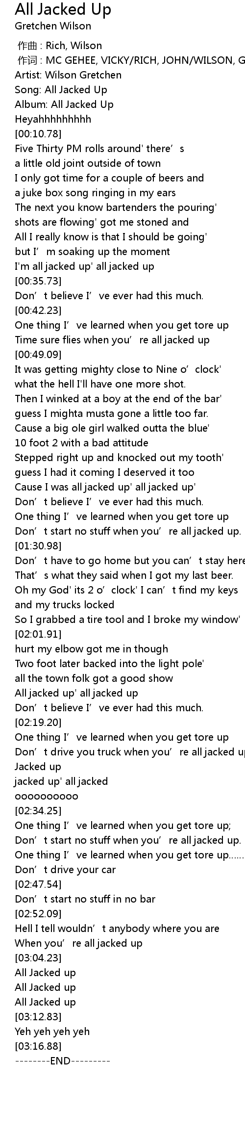 | [03:07.87] | All Jacked up |