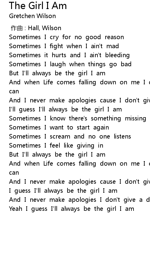 | [03:03.39] | Yeah I guess I'll always be the girl I am |
