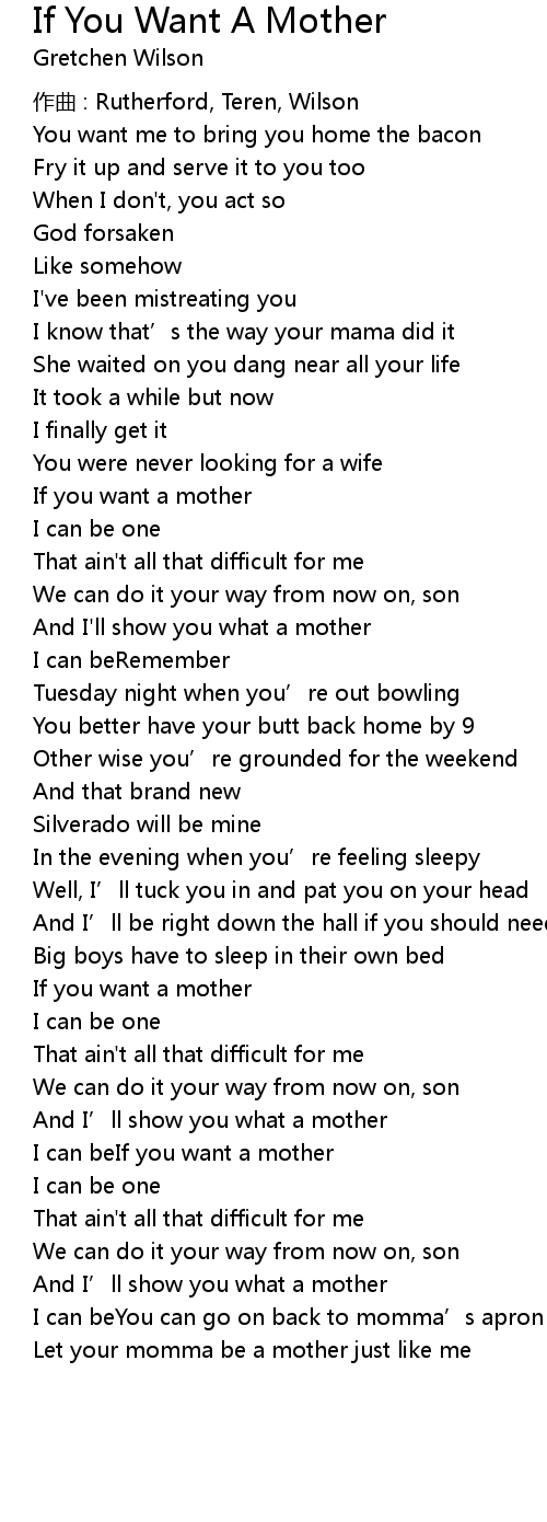 | Song | If You Want A Mother |