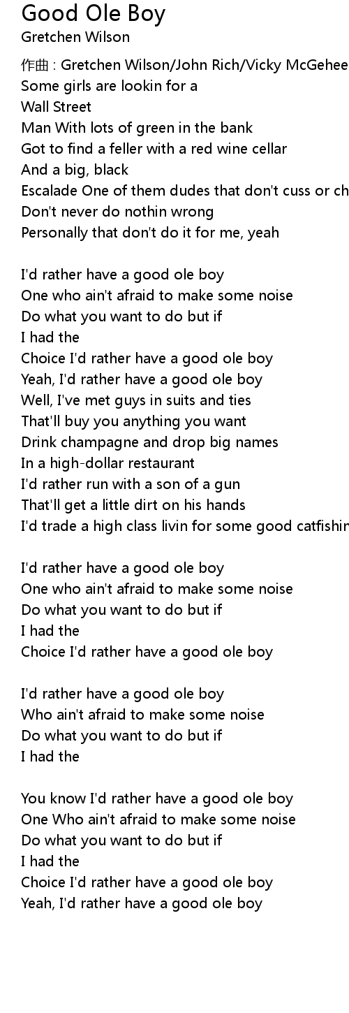 | Yeah, I' d rather have a good ole boy Chorus | |