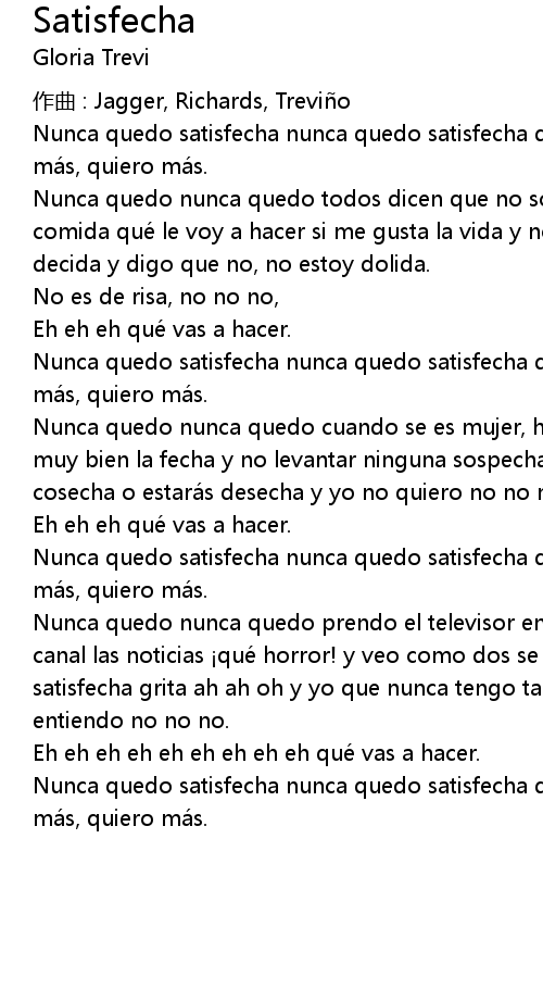 | Nunca quedo satisfecha nunca quedo satisfecha quiero má s, quiero má s quiero má s, quiero má s. |