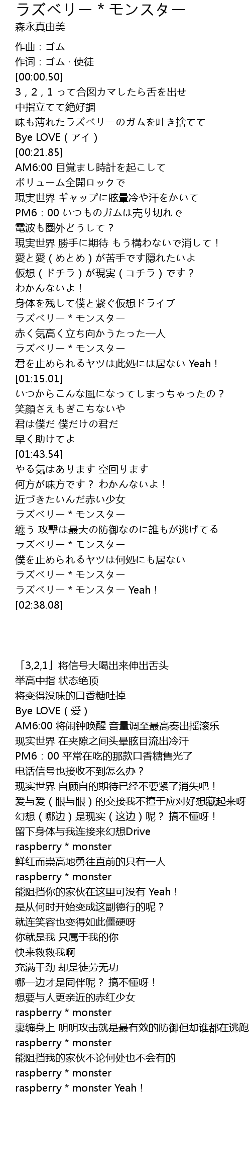 | [02:31.83] | ラズベリー*モンスター Yeah! |