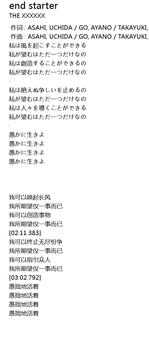 | [02:28.545] | 私は絶えぬ争しいを止めるの |