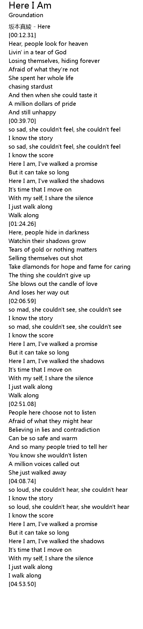 | [01:00.61] | Here I am, I' ve walked a promise |