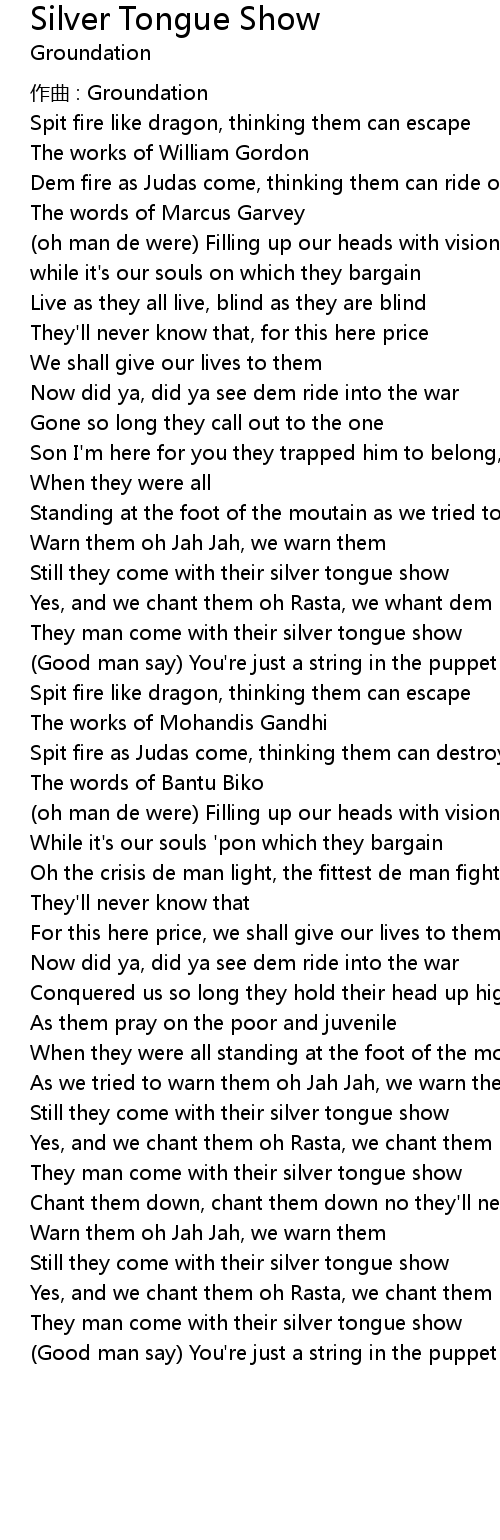 | Song | Silver Tongue Show |