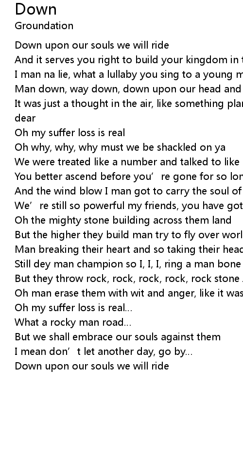 | Man down, way down, down upon our head and his soul | |