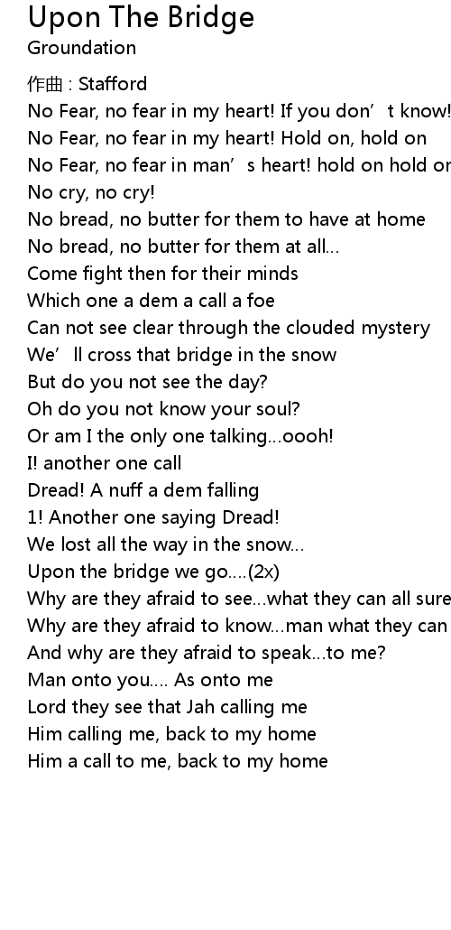 | Upon the bridge we go….(2x) | |
