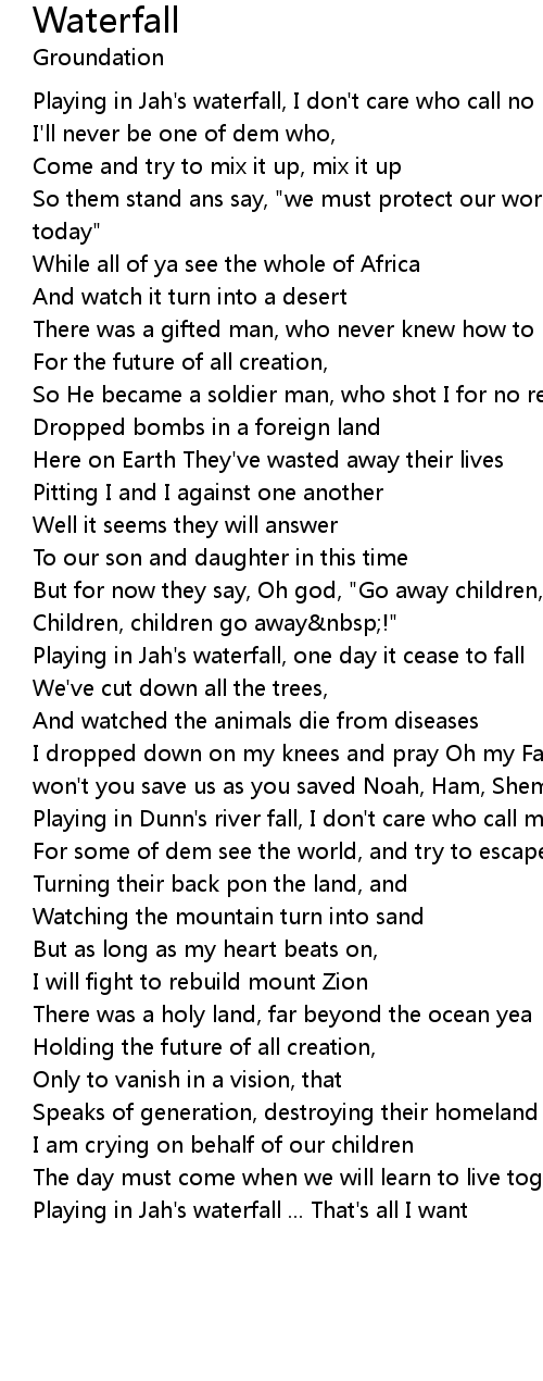 Playing in Jah's waterfall, one day it cease to fall |