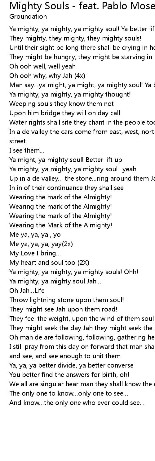 | Ya mighty, ya mighty, ya mighty soul yeah | |