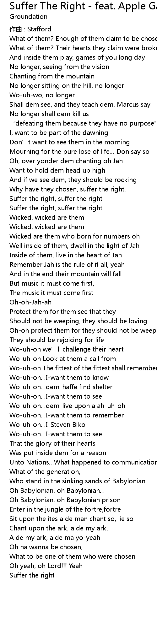 | Song | Suffer The Right - feat. Apple Gabriel |