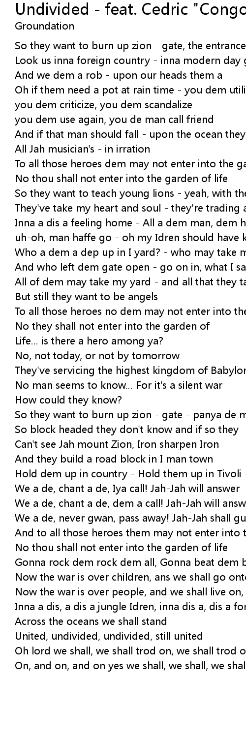 Undivided - feat. Cedric "Congos" Mytton & Don Carlos Lyrics