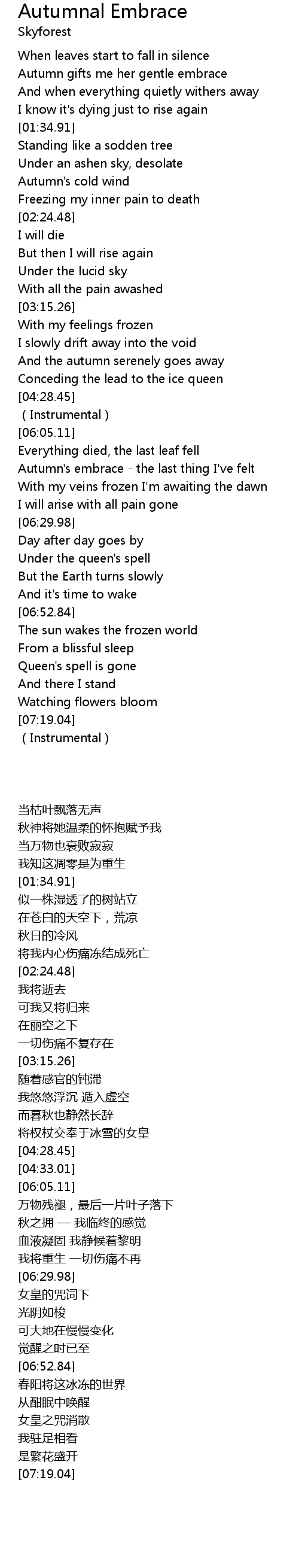 | [06:11.44] | Autumn's embrace - the last thing I've felt |