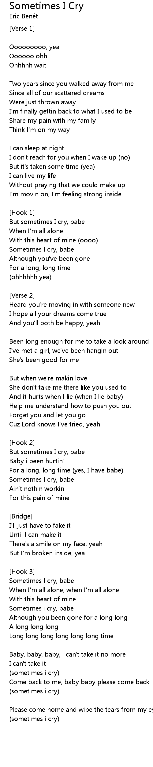 But sometimes I cry, babe |