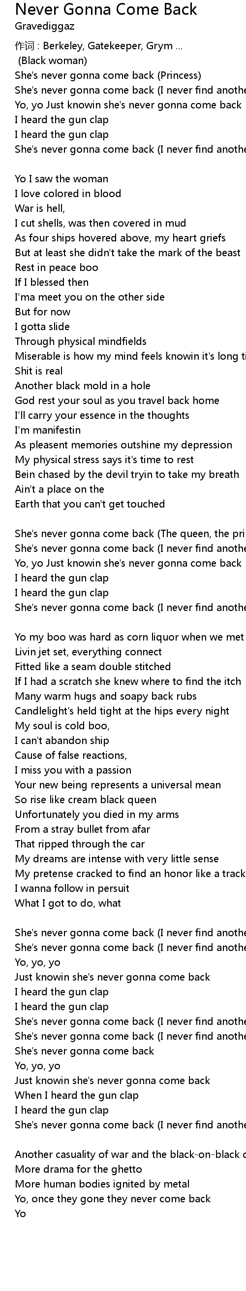 | She's never gonna come back (I never find another honor like a track) [Grym Reaper] | |