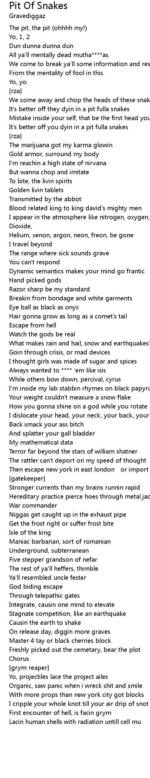 | It's better off you dyin in a pit fulla snakes | |