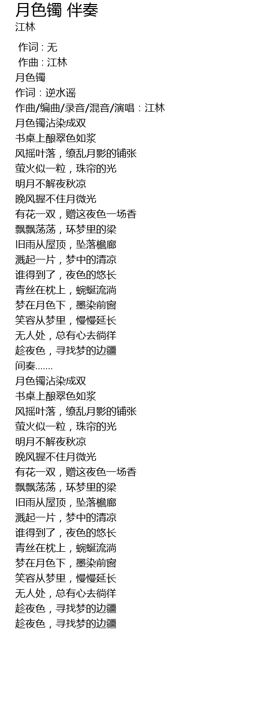 | [00:00.052] | 作曲/编曲/录音/混音/演唱:江林 |