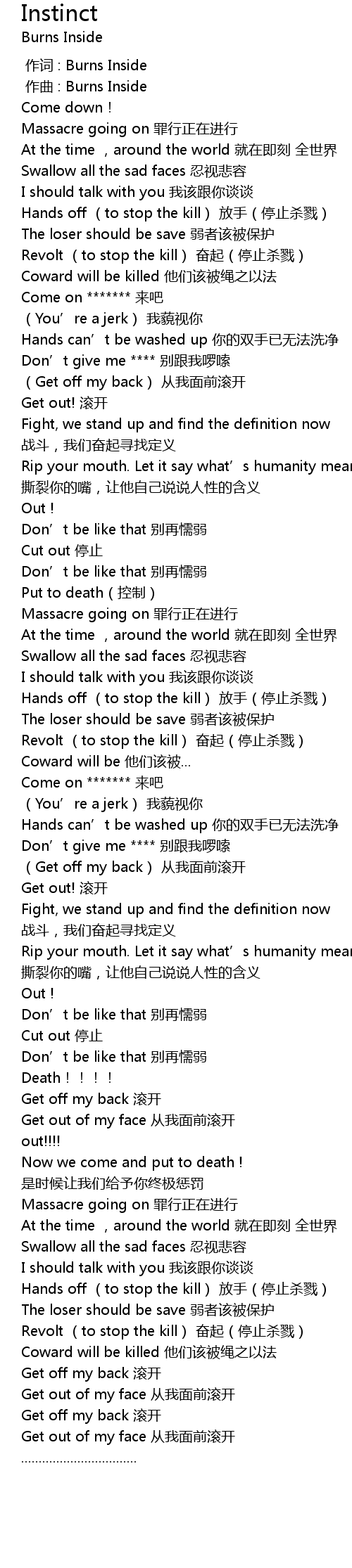 | [00:40.530] | Revolt (to stop the kill) 奋起(停止杀戮) |