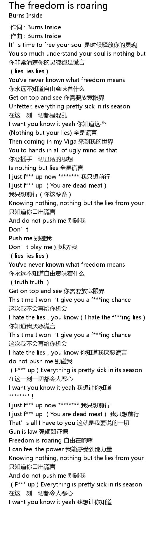 | [03:10.842] | Freedom is roaring 自由在咆哮 |