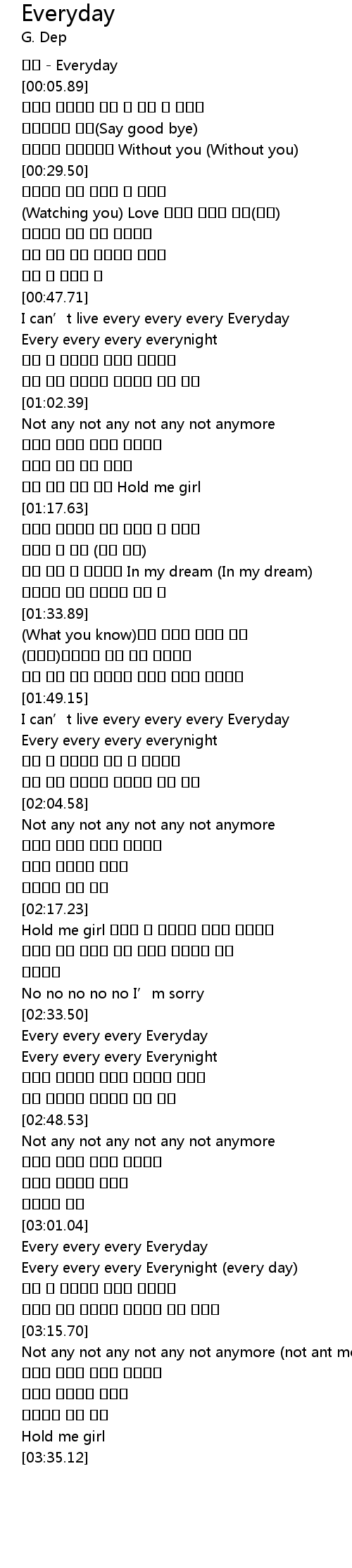 | [03:04.88] | Every every every Everynight (every day) |