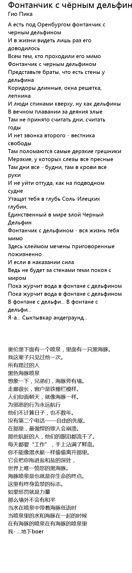 Фонтанчик с чёрным дельфином  Lyrics