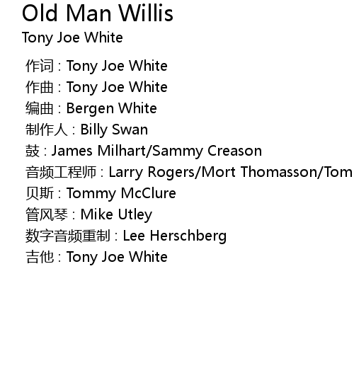 | [00:00.000] | zuò qǔ : Tony Joe White |