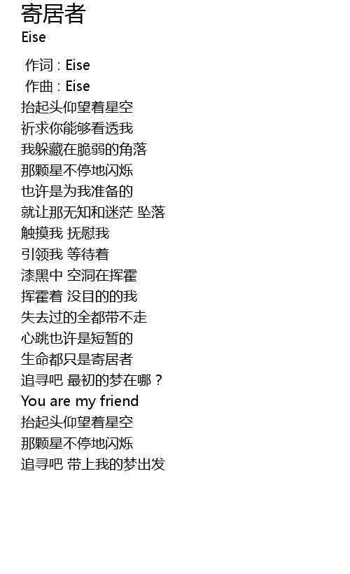 | [00:00.000] | 作词 : Eise |