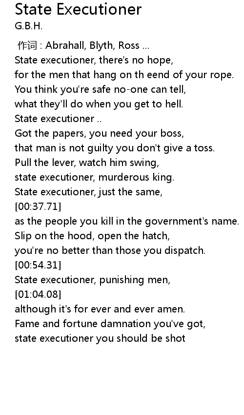 | [00:20.01] | State executioner .. |