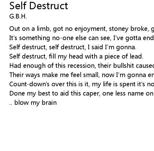 Self destruct, fill my head with a piece of lead. |