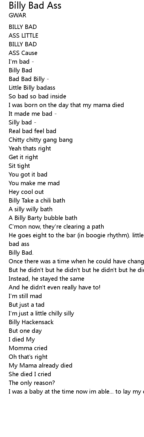 He goes eight to the bar (in boogie rhythm). little billy bad, little bad billy bad ass |