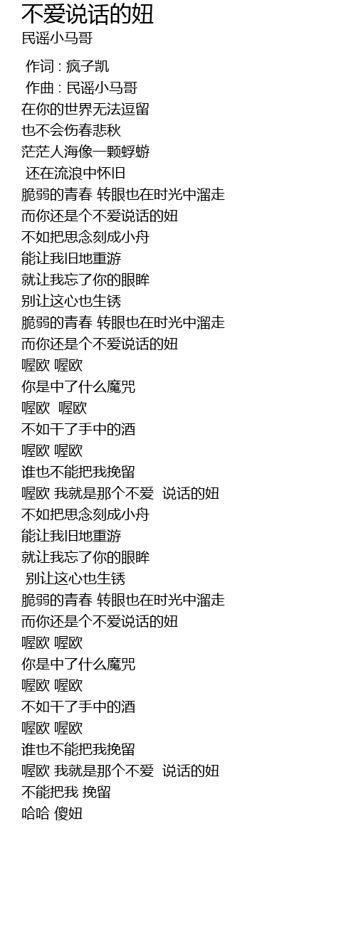 | [00:01.000] | 作曲 : 民谣小马哥 |