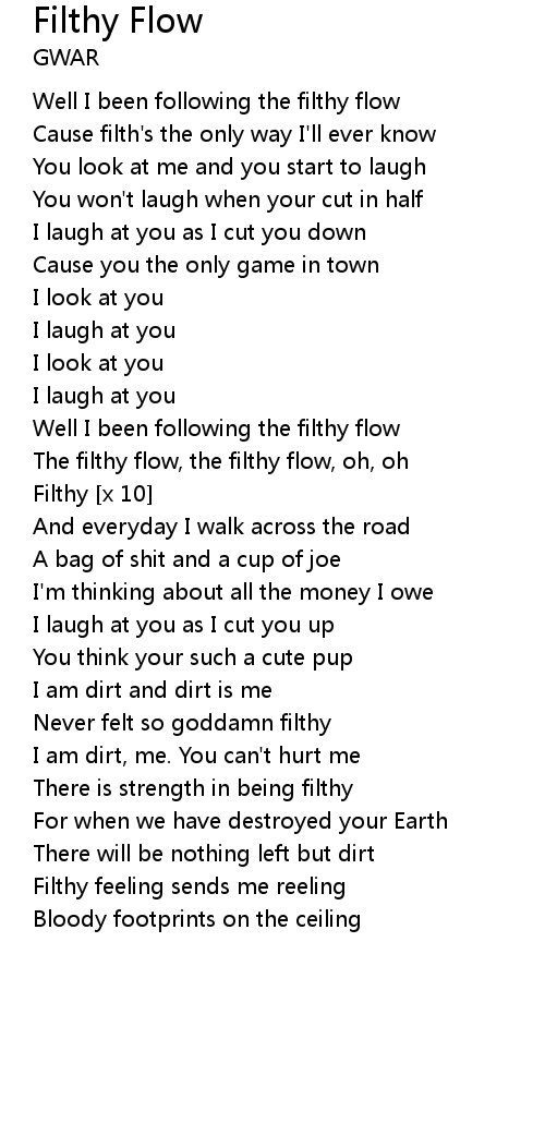 | Well I been following the filthy flow | |