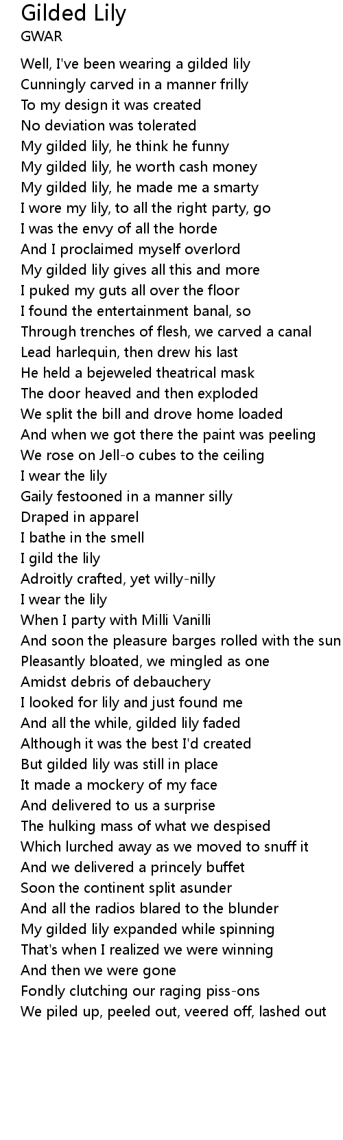Well, I've been wearing a gilded lily |