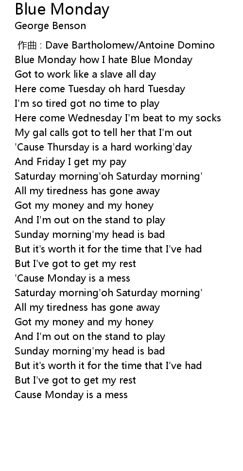 | [00:12.17] | Blue Monday how I hate Blue Monday |