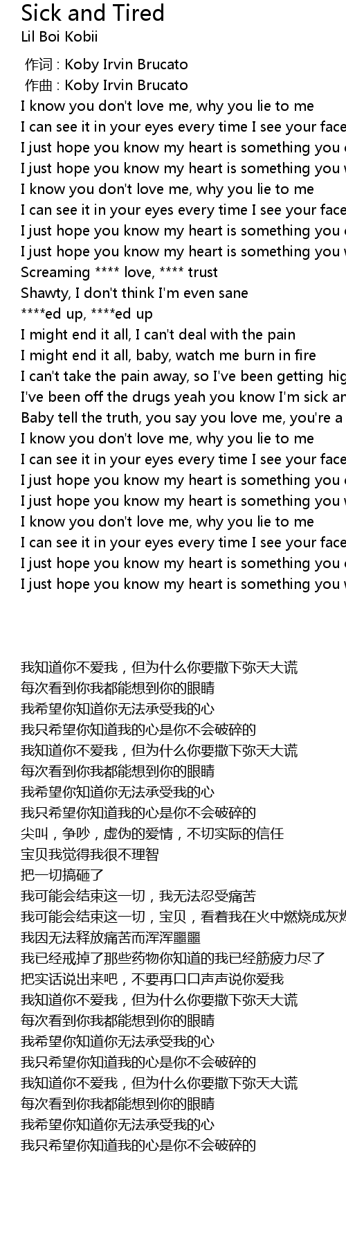 | [00:23.71] | I know you don't love me, why you lie to me |