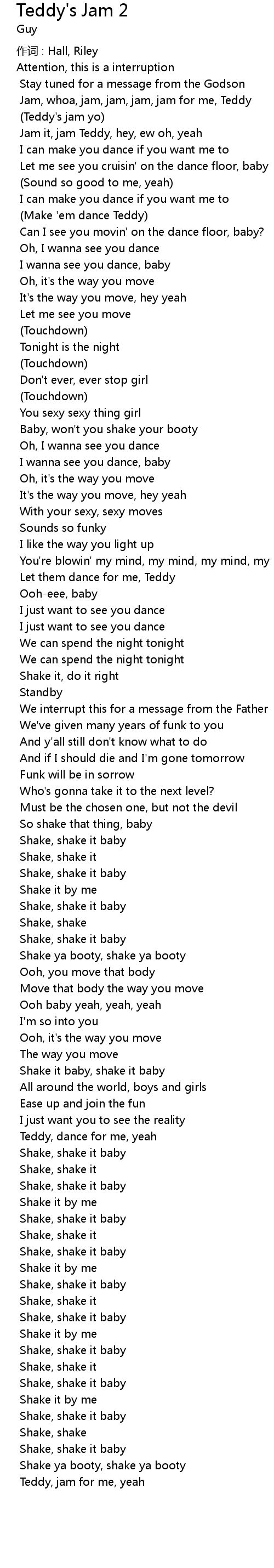 | Jam it, jam Teddy, hey, ew oh, yeah | |